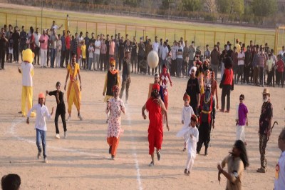 होली के उल्लासपूर्ण माहौल में शहर का धरणीधर खेल मैदान शनिवार को अनोखे दृश्य का साक्षी बना। मैदान पर देवता, भूत-पिशाच, संत-महात्मा, दिग्गज नेता और फिल्मी सितारों के स्वांग धरे कलाकारों ने फागणिया फुटबॉल को रंग, हास्य और संदेश से भर दिया। ‘बुरा न मानो होली’ के भाव के साथ हुए इस मुकाबले में महिला टीम ने पुरुष टीम को 3–2 गोल से पराजित कर सबका दिल जीत लिया।