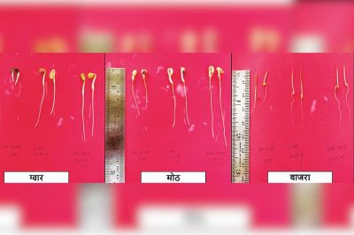 प्राइमेड और सूखे बीजों की अंकुरण विशेषताओं और अंकुरित शक्ति क्षमता का मूल्यांकन किया गया। पानी की जगह ऊंट मूत्र से अंकुरित बीज जल्दी अंकुरित हो गए। परिणामों से पता चला कि सभी फसलों के बीज ऊंट मूत्र से भिगोने के बाद इनके पौधों की लंबाई भी पानी की बजाए अधिक रहती है। 48 घंटे के बाद मूत्र में भिगोये और सूखे बीज की तुलना की गई। इसमें मोठ, ग्वार और बाजरा में अंकुरण क्रमश: 38.5 प्रतिशत 45.2 और 64. 6 प्रतिशत रहा। प्राइमिंग की अवधि के अनुसार 60 घंटे तक बीज प्राइमिंग के बाद ऊंट के मूत्र में 2 घंटे बीज भिगोने के परिणामस्वरूप मोठ, ग्वार और बाजरा में 1 घंटे से अधिक क्रमश: 52.2, 57.3 और 76.5 प्रतिशत अधिक अंकुरण हुआ।