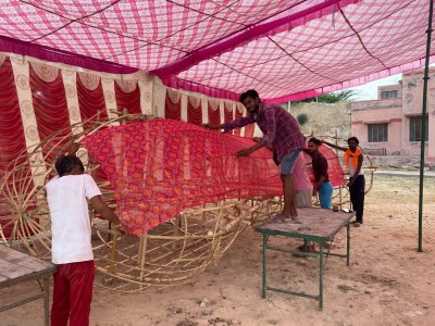 बीकानेर.धरणीधर खेल मैदान पर सांस्कृतिक प्रस्तुतियों के बीच दशहरा महोत्सव का आयोजन होगा। यहां 85 फीट ऊंचे रावण तथा 75-75 फीट ऊंचे कुंभकण व मेघनाद के पुतलों का दहन होगा। खेल मैदान के पास िस्थत करीब 100 फीट ऊंचे धोरे पर होने वाला शूर्पणखा के पुतलने का दहन आकर्षण का केन्द्र रहेगा। रिमोट से रावण, कुंभकर्ण व मेघनाद के पुतलों का दहन होगा। दशहरा महोत्सव के लिए यहां पुतलों के निर्माण के साथ-साथ रावण के सोने की लंका भी बनाई जा रही है। उत्तर प्रदेश से आए कारीगर यहां दिन रात पुतलों के निर्माण में जुटे हुए है। वहीं दशहरा कमेटी के सदस्य भी अन्य तैयारियों में जुट गए है। दशहरा महोत्सव के दौरान शूर्पणखा के पुतले का भी दहन केवल धरणीधर खेल मैदान में होने वाले महोत्सव में ही होता है।