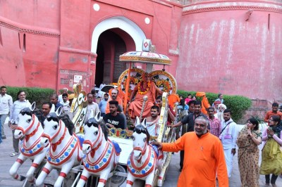 इससे पूर्व जगदगुरु शंकराचार्य के नाल एयरपोर्ट विशेष विमान से पहुंचने पर स्वागत अभिनंदन किया गया। नाल एयरपोर्ट पर आचार्य बजरंगदास महाराज, कांग्रेस नेता डॉ. बीडी कल्ला, सुरेन्द्रसिंह राजपुरोहित, विवेक शर्मा, कमल कल्ला, भागीरथ कुमावत, डॉ. गुंजन सोनी, अशोक मोदी, सीताराम कच्छावा आदि ने स्वागत किया।