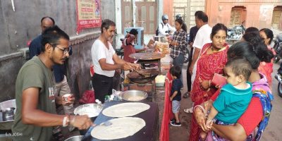 घर-घर में पकवान बने। शहर में अनेक स्थानों पर अस्थायी नमकीन, कचौरी और फास्ट फूड की दुकानें लगी, जिन पर रात तक खरीदारी का सिलसिला चलता रहा। कभी धमोळी पर नमकीन कचौरी की रहने वाली मांग पर अब फास्ट फूड का रंग चढ़ गया है।