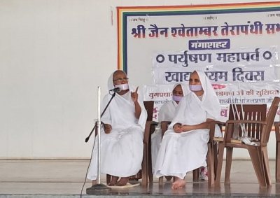 बीकानेर. श्री जैन श्वेतांबर तेरापंथी सभा गंगाशहर के तत्वावधान में तेरापंथ भवन में साध्वी चरितार्थ प्रभा एवं साध्वी प्रांजल प्रभा के सानिध्य में रविवार को पर्युषण महापर्व का प्रथम दिवस खाद्य संयम दिवस के रूप में मनाया गया। इस अवसर पर साध्वी चरितार्थ प्रभा ने कहा कि पर्युषण महापर्व बाहर की दुनिया से भीतर की दुनिया में प्रवेश करने का महापर्व है। आसक्ति से अनासक्ति, वासना से उपासना, राग से विराग की ओर प्रस्थान ही पर्युषण है। पर्युषण काल में जप, तप, सामायिक, मौन, त्याग व तपस्या के साथ-साथ मोबाइल का वर्जन भी करें। साध्वी प्रांजल प्रभा ने कहा कि पर्युषण महापर्व पर्वों में अनुत्तर है, सर्वोत्तम है। इस पर्व में धर्म का पोषण होता है। यह आत्म शुद्धि का प्रेरक पर्व है। पर्युषण पर्व व्यक्ति के शुद्ध भावों को बढ़ाने वाला तथा विकारी भावों को घटाने वाला है। साध्वी वैभवयशा ने कहा कि साधना का पहला पैरामीटर है - खाद्य संयम। प्रत्येक व्यक्ति को जीवन चलाने के लिए आहार करना जरूरी है। जीने के लिए खाना आवश्यक है, परंतु यदि खाने के लिए ही जीना हो, तो यह चिंतन का विषय है।कार्यक्रम की शुरूआत पर्युषण गीत के संगान से हुई। तेरापंथी सभा के उपाध्यक्ष पवन कुमार छाजेड़ ने श्रावक निष्ठा पत्र का वाचन किया गया।