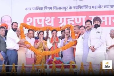 Mayor Pooja Vidhani Oath Controversy: नगर निगम बिलासपुर की महापौर पूजा विधानी और 70 वार्डों में निर्वाचित पार्षदों ने शपथ ग्रहण के साथ ही शुक्रवार को शपथ ली। शहर के मुंगेली नाका मैदान में शपथ ग्रहण समारोह का आयोजन किया गया।
