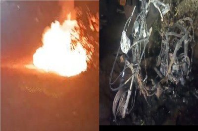 गनीमत थी कि पीछे से आ रहे कार सवार ने यह माजरा देख दिया और चालक को आग लगने की जानकारी दी। इस पर बच्चे तो चलती स्कूटी से ही कूद कर भागे, वहीं आनन-फानन में चालक ने स्कूटी को रोड किनारे खड़ी कर भागा। देखते ही देखते ही स्कूटी धू-धूकर जलने लगी।