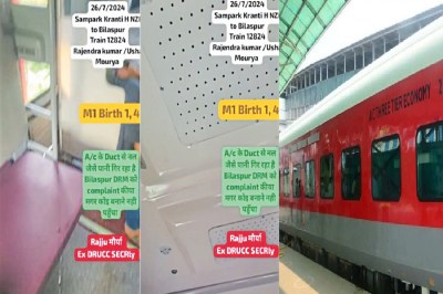 Indian Railway: दिल्ली से बिलासपुर तक सफर कर यात्रियों को उस दौरान भारी परेशानी होने लगी जब कोच के छज्जा से पानी की धार गिरने लगी। ट्रेन में पूर्व डीआरयूसीसी मेंबर भी सफर कर रहे थे। मेंबर ने बताया कि उन्हें बिलासपुर के अधिकारियों को मैसेज के माध्यम से सूचना दी वहीं हेल्प लाइन नबर पर भी सपर्क किया बावजूद इसके कोई भी मदद के लिए नहीं पहुंचा। ट्रेन में मौजूद दुर्ग की टीम ने डक्ट में टीन डाल कर यात्रियों को थोड़ी राहत पहुंचाई।