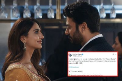 फिल्म अबीर गुलाल को लेकर कुछ दिनों से सोशल मीडिया पर खबर तेजी से फैल रही थी कि यह फिल्म भारत में 26 सितंबर को रिलीज होने जा रही है। लेकिन इस बढ़ती अफवाह को देखते हुए, प्रेस इंफॉर्मेशन ब्यूरो (PIB) ने खुद सामने आकर सफाई दी है। PIB ने अपनी पोस्ट में इन दावों को पूरी तरह से 'फेक' बताया है। उन्होंने लिखा, "कई रिपोर्ट्स में दावा किया जा रहा है कि फवाद खान और वाणी कपूर स्टारर फिल्म 'अबीर गुलाल' को भारत में 26 सितंबर 2025 को रिलीज किया जा रहा है। ये दावे पूरी तरह से झूठे हैं और इस फिल्म को ऐसा कोई भी क्लीयरेंस नहीं दिया गया है।"