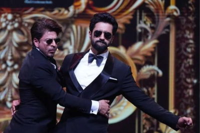 "ये तो असली फायर है किंग खान @iamsrk & @vickykaushal09 ने स्टेज पर आग लगा दी है"