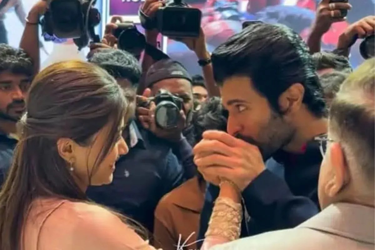 जैसे ही विजय देवरकोंडा स्टेज पर आए, उन्होंने तुरंत रश्मिका का हाथ थामा और प्यारी निगाहो से उनकी ओर देखा। इससे पहले कि कोई कुछ और समझ पाता, विजय ने सबके सामने रश्मिका के हाथ पर एक प्यार भरा Kiss किया। तो वहीं, रश्मिका के चेहरे पर आई शर्मीली-सी मुस्कान ने इस सीन को और भी दिलचस्प बना दिया। ये मोमेंट कैमरे में कैद हो गया और देखते ही देखते सोशल मीडिया पर तेजी वायरल हो गया।