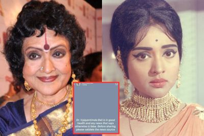 Vyjayanthimala Son Refutes Actress Death Rumors: बॉलीवुड की दिग्गज अभिनेत्रियों में से एक वैजयंतीमाला अपने निधन को लेकर चर्चा में आ गई है। शुक्रवार शाम खबर आई कि वैजयंतीमाला ने दुनिया को अलविदा कह दिया है। इसके बाद पूरे इंडस्ट्री में शोक की लहर दौड़ गई। सोशल मीडिया पर हंगामा मच गया। हर कोई अपनी फेवरेट एक्ट्रेस के निधन से दुखी हो गया। उनके फैंस उनकी आत्मा की शांति और एक्ट्रेस को श्रद्धांजलि देने लगे। तब उनके बेटे ने एक पोस्ट शेयर कर हर किसी को हैरान कर दिया। उन्होंने बताया कि उनकी मां वैजयंतीमाला के निधन की खबर को झूठ है। उन्होंने जो लिखा उसे पढ़कर फैंस की जान में जान आ गई।