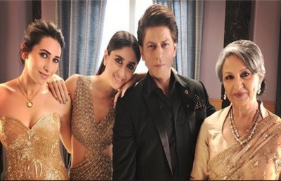 बॅालीवुड इंडस्ट्री के रोमांस किंग शाहरुख खान ने हाल में एक्ट्रेस करीना कपूर खान, करिश्मा कपूर और शर्मिला टैगोर संग एक एड शूट करवाया है। उस दौरान की कुछ तस्वीरें उन्होंने सोशल मीडिया पर अपलोड की हैं जो लगातार वायरल हो रही हैं। तस्वीरों में तीनों अदाकाराएं गोल्डन ड्रेस में नजर आ रही हैं। जहां एक्ट्रेस करीना और करिश्मा वनपीस पहने दिख रहे हैं वहीं शर्मिला टैगोर साड़ी में नजर आईं। शाहरुख ने खुद अपने ट्विटर और इंस्टाग्राम अकाउंट से यह फोटो शेयर की हैं।