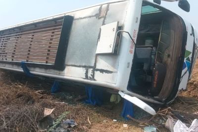 देर रात बारातियों से भरी बस अनियंत्रित होकर पलट गई। इस दौरान में चीख पुकार मच गई।