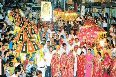 शोभायात्रा में विभिन्न प्रकार के बैंड बाजे व अखाड़े में युवा विभिन्न करतब दिखाते हुए चल रहे थे। लोक कलाकारों द्वारा अनेक प्रस्तुतियों से सभी दर्शकों को अपनी ओर आकर्षित कर रहे थे। ढोल नगाड़े की धुन में युवा थिरकते हुए चल रहे थे। शोभायात्रा में जगह-जगह हुई आतिशबाजी ने आसमां को रंग-बिरंगा बना दिया। पग-पग पर विभिन्न सामाजिक संगठनों ने स्वागत कर तीज माता के दर्शन किए। शोभायात्रा में पार्षद पारम्पारिक वेशभूषा में नजर आए।