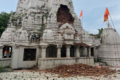 कस्बे के राम सागर झील किनारे स्थित हुंडेश्वर महादेव मंदिर का कुछ हिस्सा एवं त्रिवेणी चौक के मुख्य रास्ते पर एक पुराना मकान का छज्जा शनिवार को बिजली की तेज गड़गडाहट के साथ गिर गया है।