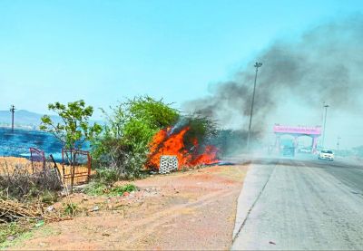 गुढ़ानाथावतान. बूंदी बिजौलियां स्टेट हाइवे पर गुरुवार दोपहर को दौलतपुरा टोल प्लाजा के पास एक खेत में लगी आग मुख्य सडक़ व टोल प्लाजा तक पंहुचने से अफरा-तफरी मच गई। एक किसान द्वारा गेहूं की कम्बाइन मशीन से कटाई के बाद नोलाइयों में आग लगाई गई थी। इसी दौरान तेज हवा चलने लगी जिससे आग आसपास के खेतों में फेल गई। कुछ ही क्षण में आग की लपटें हाइवे पर टोल प्लाजा तक पंहुच गई। यहां से गुजर रहे वाहन चालक भी सडक़ व टोल बूथ पर आग की लपटें देखकर सकते में आ गए। कुछ समय के लिए वाहनों की आवाजाही थम गई। टोल नाके के कर्मचारियों ने तुरंत पुलिस व दमकल को आग की सूचना दी तथा पानी का टैंकर मंगवाकर टोल बूथ पर छिडक़ाव शुरू करवाया। कुछ देर बाद मौके पर पंहुची दमकल ने आग पर काबू करने का प्रयास किया, लेकिन हवा तेज होने से शाम तक आग अस्तोली के खेतों तक पंहुच गई। आग की चपेट में आने से हाइवे किनारे लगाए गए पेड़ पौधे जल गए तथा टोल प्लाजा की भूमिगत विद्युत लाइन में भी आंशिक रूप से नुकसान हुआ है। आग की घटना में गनीमत रही कि कोई बड़ा हादसा होने से टल गया। गौरतलब है कि रोक के बावजूद क्षेत्र में किसान नोलाइयों में आग लगा रहे है जो नियम विरुद्ध है व खतरनाक साबित हो सकती है।