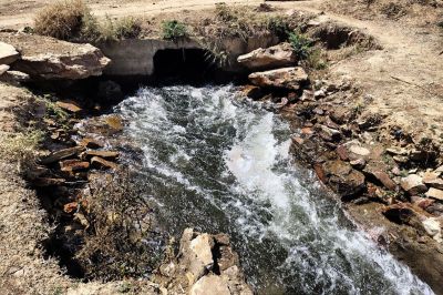 गरड़दा मध्य सिंचाई परियोजना का पानी नदी में छोड़ा जा रहा है।
