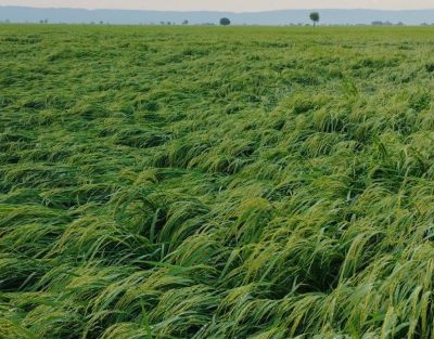 कस्बे सहित क्षेत्र में गुरुवार शाम को अंधड़ चलने के कारण खेतों में धान की फसल आड़ी पड़ गई। किसान मोहित चौधरी, धर्मेंद्र मीणा, रामहेत गुर्जर आदि ने बताया हवा चलने से आसपास के की खेतों में धान की फसल आड़ी पडक़र जमीन के चिपक गई, जिससे उत्पादन प्रभावित होगा ।