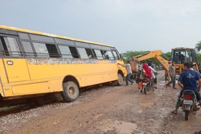 मंगलवार को भी सड़क पर ऐसा ही हुआ। सामने से आ रहे वाहन को साइड देने के चक्कर मे विद्यालय के बच्चों को लेकर आ रही एक बाल वाहिनी बस सड़क से उतर गई। बस सड़क से उतरी उस समय बस बच्चों से भरी हुई थी जो दुर्घटनाग्रस्त होते-होते बच गई। बस के धंसते ही बच्चों में हड़कंप मच गया और वे रोने लगे।