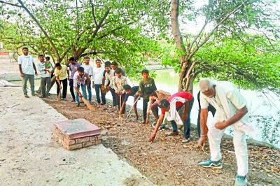 मालिकपुरा तालाब पर युवाओं ने किया श्रमदान