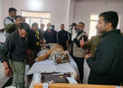 रामगढ़ विषधारी अभयारण्य की सीमा पर इस बाघ की लोकेशन लगातार एक जगह पर आने से वनकर्मियों को किसी अनहोनी की आशंका हुई। उन्होंने शुक्रवार को मौके पर जाकर देखा तो वहां बाघ मृत मिला। मृत बाघ के शव को बड़ी मशक्कत से पहाड़ी नाले में रास्ता बनाकर नीचे उतारा गया। टीम शव को लेकर बूंदी जैतसागर झील किनारे वन विभाग के जिला कार्यालय पहुंची। जहां पांच पशु चिकित्सक की टीम ने शव का पोस्टमार्टम किया। प्रथम दृष्टया बाघ की मौत का कारण क्षेत्राधिकार की लड़ाई होना माना जा रहा है। पोस्टमार्टम के दौरान कोटा के मुख्य वन संरक्षक रामकरण खेरवा, बूंदी पुलिस अधीक्षक राजेंद्र कुमार मीणा, रामगढ़ के उपवन संरक्षक वीरेंद्र कुमार झा,टेरिटोरियल डीएफओ देवेंद्र सिंह भाटी, कोटा चिडिय़ाघर के डीएफ ओ अनुराग भटनागर सहित अन्य अधिकारी मौजूद रहे।