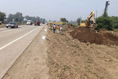 राष्ट्रीय राजमार्ग 52 पर रामगंजबालाजी तिराहे पर ओवर ब्रिज बनाने के लिए संपर्क सड़क का कार्य करने के लिए मिट्टी खुदाई कार्य किया गया है।