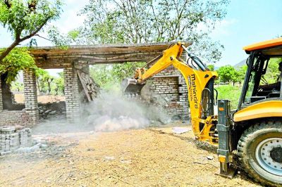 बूंदी. रामगढ़ विषधारी टाइगर रिजर्व के कोर 1 में से विस्थापित हुए परिवारों को टाइगर रिजर्व से बाहर निकालने के लिए वन विभाग ने सख्ती दिखाना शुरू कर दिया है। सोमवार को टाइगर रिजर्व कोर प्रबंधन ने गुलखेड़ी गांव में विस्थापित हो चुके 26 परिवारों के घरों को जेसीबी मशीन से जमीदोज करने की कार्यवाही की। उपवन संरक्षक एवं उपक्षेत्र निदेशक (कोर) अरङ्क्षबद कुमार झा के निर्देशन में वन विभाग का लवाजमा गांव में पंहुचा तथा कच्चे व पक्के घरों को तोडऩे की कार्यवाही की। इस दौरान मौका मजिस्ट्रेट तहसीलदार रायथल, क्षेत्रीय वन अधिकारी रामगढ़, थानाधिकारी रायथल के समक्ष क्षेत्रीय वन अधिकारी जैतपुर, इंद्रगढ़, केशवरायपाटन व डिविजन उडऩदस्ता के संयुक्त प्रयास से विस्थापन की प्रक्रिया को अंजाम दिया। गौरतलब है कि इससे पहले 39 परिवारों को पूर्ण रूप से विस्थापित किया जा चुका है।