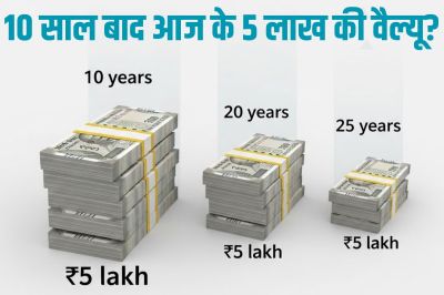 आज अगर कोई सामान या सर्विस 5 लाख रुपये की आती है, तो 20 साल बाद आपको इसी सामान या सर्विस के लिए 16,03,568 रुपये देने पड़ सकते हैं। इसी तरह 25 साल बाद यह वैल्यू 21,45,935 रुपये निकलकर आती है। अब आप अंदाजा लगा सकते हैं कि महंगाई कैसे काम करती है।