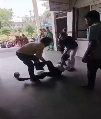 पर्चा फाड़ा और फिर कान के नीचे थप्पड़ मारने लगे। इसके बाद उन्होंने अस्पताल के एक कंपाउंडर की मदद से बुजुर्ग को पकडकऱ पुलिस चौकी तक घसीटा और वहीं उन्हें जमीन पर पटक कर लात-घूंसे बरसाए।