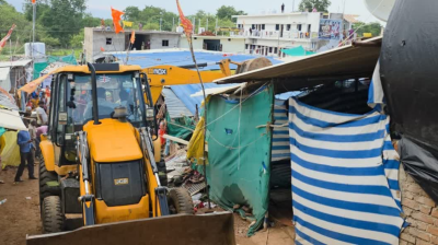 पंडित धीरेंद्र शास्त्री के बागेश्वर धाम में इन दिनों गुरु पूर्णिमा महोत्सव चल रहा है। यहां देशभर से आए एक लाख से ज्यादा श्रद्धालु एकत्रित हैं। मंगलवार को पेशी का दिन होने से लोगों की गहमागहमी ज्यादा थी। ऐसे में मंगलवार रात करीब साढ़े 3 बजे एक ढाबे की दीवार गिर गई जिसके मलबे में दबने से यूपी की 40 वर्षीय महिला सुनीता देवी की मौत हो गई थी। कई श्रद्धालु घायल भी हो गए थे जिसके बाद अवैध ढाबों, होम स्टे और होटलों की व्यवस्थाओं पर सवाल उठने लगे थे। ऐसे में जिला प्रशासन ने अवैध निर्माण ध्वस्त करने की कार्रवाई की।
