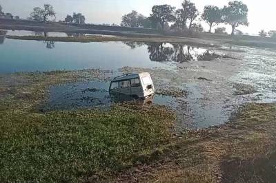 mp news: बोलेरो में बैठे थे 7 लोग, अचानक सामने आई नीलगाय को बचाने के चक्कर में खंभे से टकराकर तालाब में गिरी गाड़ी...।
