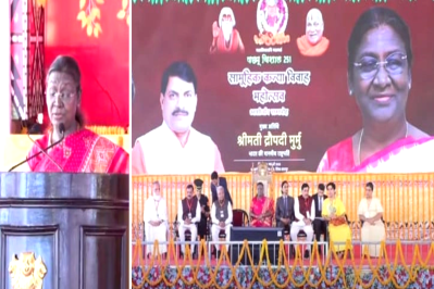 राष्ट्रपति द्रौपदी ने अपने संबोधन में कहा कि, 'सभी जोड़ों को बधाई देती हूं। सभी को सुखमय जीवन की शुभकामनाएं। आपको विवाह सूत्र में बांधने वाले बागेश्वर धाम के धीरेंद्र शास्त्री को धन्यवाद देती हूं। विवाहित जोड़ों को गृहस्थी के सामान के साथ-साथ जीवनयापन के लिए आटा चक्की और सिलाई मशीन भी दी जा रही है।'