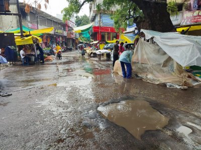५.बैलबाजार चौक पर जगह-जगह गड्ढे हो गए हैं। नगर निगम ने मरम्मत भी इतनी नहीं की कि वाहन का गुजरना मुश्किल हो गया है।