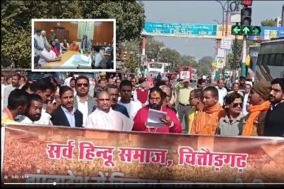 Chittorgarh News : बांग्लादेश में अल्पसंख्यक हिंदुओं पर हो रहे अत्याचार के विरोध में सर्व हिंदू समाज ने संतों के नेतृत्व में रैली निकाल कर प्रदर्शन किया। साथ में चित्तौड़गढ़ जिला कलेक्टर को ज्ञापन सौंपा।