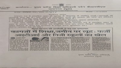 साहवा. कस्बे में शिक्षा के नाम पर चल रहे कथित कागजी खेल को लेकर राजस्थान पत्रिका में प्रकाशित खबर के बाद शिक्षा विभाग ने गंभीरता दिखाते हुए जांच की कार्रवाई शुरू कर दी है। पत्रिका के बुधवार के अंक में "कागजों में शिक्षा, जमीन पर लूट: आइटीआई और निजी स्कूलों का खेल" शीर्षक से प्रकाशित समाचार पर स्वतः संज्ञान लेते हुए मुख्य ब्लॉक शिक्षा अधिकारी तारानगर ने दो सदस्यीय जांच कमेटी का गठन किया है।