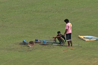 तेज बारिश और मैदान में खराब जल निकासी के चलते ग्रेटर नोएडा का शहीद विजय सिंह पथिक स्पोर्ट्स कॉम्प्लेक्स तालाब की तरह भर गया। इस मैच का टॉस चौथे दिन भी नहीं हो पाया है।