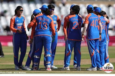 ENG-W vs IND-W: भारतीय महिला क्रिकेट टीम ने पांच टी-20 मैचों की सीरीज के पहले मैच में शनिवार को इंग्लैंड को हराकर सीरीज में 1-0 की बढ़त ले ली। ट्रेंट ब्रिज में खेले गए पहले मैच में भारतीय टीम ने इंग्लैंड को 97 रन से हराया। भारतीय टीम ने इंग्लैंड को जीत के लिए 211 रन का लक्ष्य दिया था, लेकिन मेजबान टीम 14.5 ओवर में 113 रन पर सिमट गई।