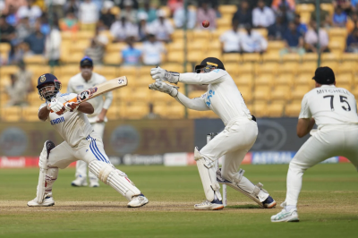 India vs New Zealand 1st Test: भारत और न्यूजीलैंड के बीच बेंगलुरु के एम चिन्नास्वामी स्टेडियम में खेला जा रहा पहला टेस्ट मैच रोमांचक मोड़ पर पहुंच गया है। पहली पारी में 46 पर आउट होने के बाद भारत ने दूसरी पारी में जोरदार वापसी की है और मात्र चार विकेट के नुकसान पर अबतक 403 रन बना चुकी है। क्रीज़ पर फिलहाल सरफराज खान 150 रन और पंत 90 रन बनाकर खेल रहे हैं।