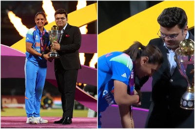 जीत की खुशी के बावजूद कप्तान हरमनप्रीत कौर सोशल मीडिया पर ट्रोलिंग की शिकार हो रही हैं। दरअसल जीत के बाद जब हरमनप्रीत कौर ट्रॉफी लेने के लिए पोडियम पर पहुंची तो उन्होंने आईसीसी चेयरमैन जय शाह के पैर छूने की कोशिश की। हालांकि शाह ने उन्हें ऐसा करने से रोक दिया और ट्रॉफी हरमनप्रीत को सौंपी। लेकिन इसका वीडियो सोशल मीडिया पर वायरल हो रहा है। लोग उन्हें इसके लिए ट्रोल कर रहे हैं।