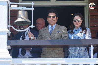 Lords Test Iconic Bell: भारत और इंग्लैंड के बीच गुरुवार से लॉर्ड्स में एंडरसन-तेंदुलकर ट्रॉफी के तीसरे टेस्ट की शुरुआत हुई। सचिन तेंदुलकर ने लॉर्ड्स टेस्ट की शुरुआत से पहले पांच मिनट तक प्रतिष्ठित घंटी बजाई। सचिन तेंदुलकर अपनी पत्नी अंजली तेंदुलकर के साथ स्टेडियम पहुंचे। उन्होंने वहां मौजूद दर्शकों को नमस्ते करने और फिर उनका अभिवादन स्वीकार करने के बाद पांच मिनट तक घंटी बजाई। इसके बाद सचिन तेंदुलकर ब्रिटेन के पूर्व प्रधानमंत्री ऋषि सुनक के साथ बातचीत करते नजर आए।