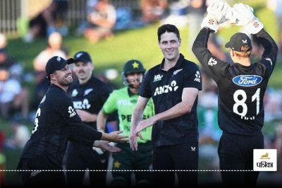 NZ vs PAK 3rd ODI Highlights: न्यूजीलैंड ने टी20 सीरीज 4-1 से जीतने के बाद पाकिस्तान के खिलाफ वनडे सीरीज भी 3-0 से जीत ली है। माउंट माउंगानुई के बे ओवल में खेले गए सीरीज के आखिरी और तीसरे मैच में न्यूजीलैंड ने 43 रन से शानदार जीत दर्ज की है। बारिश से बाधित इस मैच में टॉस हारकर पहले बल्लेबाजी करने उतरी न्यूजीलैंड की टीम ने बारिश के चलते निर्धारित 42 ओवर में आठ विकेट के नुकसान पर स्कोर बोर्ड पर 264 रन टांगे। इसके जवाब में पाकिस्तान की पूरी टीम 40 ओवर में 221 रन पर ही ढेर हो गई।