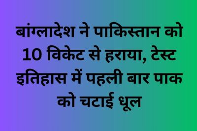 PAK vs BAN 1st Test: रावलपिंडी में खेले गए पहले टेस्ट में बांग्लादेश ने पाकिस्तान को 10 विकेट से हराकर इतिहास रच दिया। टेस्ट क्रिकेट इतिहास में बांग्लादेश की पाकिस्तान के खिलाफ यह पहली जीत है। इस मुकाबले में पाकिस्तान ने पहली पारी को 6 विकेट पर 448 रन बनाकर घोषित कर दिया। बांग्लादेश ने पहली पारी में 565 रन बनाकर मेजबानों पर दबाव बनाया और इसका असर पाकिस्तान की दूसरी पारी में देखने को भी मिला। पाकिस्तान की दूसरी पारी सिर्फ 146 रन बना सकी और 30 रन के लक्ष्य को बांग्लादेश ने बिना कोई विकेट गंवाए हासिल कर लिया।