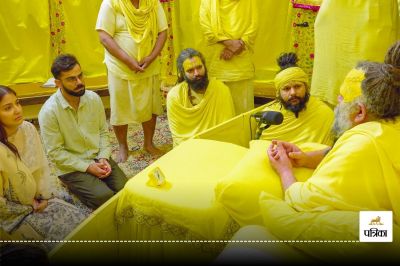 Virat Kohli Anushka Sharma-Premanand Maharaj: टेस्ट क्रिकेट से संन्यास की घोषणा के बाद मंगलवार को विराट कोहली अपनी पत्नी, अभिनेत्री अनुष्का शर्मा के साथ कृष्णनगरी मथुरा पहुंचे, जहां उन्होंने संत प्रेमानंद महाराज से मुलाकात कर उनका आशीर्वाद लिया। सात मिनट की मुलाकात के दौरान प्रेमानंद जी ने उन्हें सुखी रहने का मंत्र भी दिया। इस दौरान 'विरुष्का' की आंखों में पानी और जुबां पर राधे-राधे था। टेस्ट मैच से संन्यास लेने के बाद विराट-अनुष्का ने संत प्रेमानंद महाराज का आशीर्वाद लिया और अध्यात्म पर चर्चा की। वृंदावन स्थित राधाकेलीकुंज आश्रम पहुंचे 'विरुष्का' उनके सामने नतमस्तक नजर आए। महाराज जी ने उन्हें अध्यात्म का महत्व समझाते हुए सुखी रहने का मंत्र भी दिया।