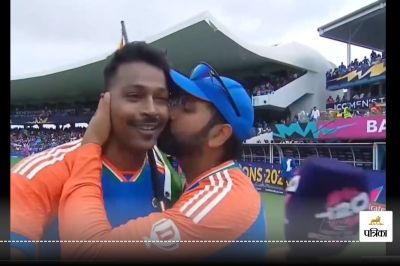 दरअसल, ये वाकया तब हुआ जब हार्दिक पांड्या मैच के बाद तिरंगा झंडा लिए स्टार स्पोर्ट्स को इंटरव्यू दे रहे थे। जीत की खुशी में कप्तान रोहित शर्मा भी वहां जा पहुंचे और हार्दिक पांड्या को चूमते हुए गले से लगा लिया। ये वीडियो सोशल मीडिया पर जमकर वायरल हो रहा है। क्रिकेट फैंस इस वीडियो पर जमकर अपनी प्रतिक्रिया दे रहे हैं।