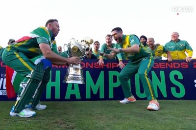 WCL 2025 के फाइनल में एबी डिविलियर्स के विस्फोटक शतक की बदौलत साउथ अफ्रीका ने पाकिस्तान को 9 विकेट से रौंदकर खिताब अपने नाम कर लिया है। इससे पिछला सीजन भारत ने जीता था।