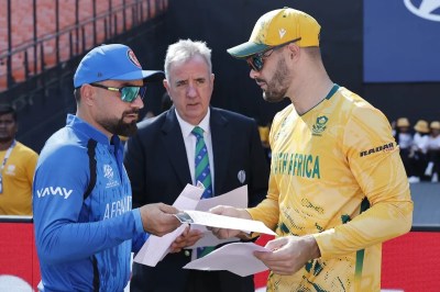 SA vs AFG: दक्षिण अफ्रीका ने 20 ओवर में छह विकेट पर 187 रन बनाए। क्विंटन डिकॉक और रियान रिकेल्टन ने दूसरे विकेट के लिए 61 गेंद में 114 रन जोड़े। डिकॉक 41 गेंद में 59 रन और रिकेल्टन 28 गेंद में 61 रन बनाए।
