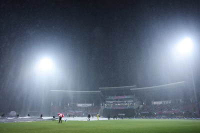 बारिश के कारण तीन ओवर की कटौती की गई है। अब साउथ अफ्रीका को 17 ओवर में डकवर्थ लुईस नियम के तहत 123 का लक्ष्य मिला है।
