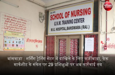 बांसवाड़ा शहर के महात्मा गांधी चिकित्सालय में संचालित जीएनएम ट्रेनिंग सेेंटर के 29 प्रशिक्षुओं के भविष्य पर तलवार लटक गई है। इन प्रशिक्षुओं की ओर से पेश बारहवीं की अंकतालिकाओं के सत्यापन के दौरान नेशनल इंस्टीट्यूट ऑफ ओपन स्कूलिंग [एनआईओएस] ने अपने यहां इनका किसी तरह का रिकार्ड ही न होने की जानकारी दी है। इस पर सेंटर ने अंकतालिकाएं फर्जी मानते हुए प्रशिक्षुओं की सूची निदेशालय भेजी है। अब आगे मार्गदर्शन अनुसार कार्रवाई होगी।