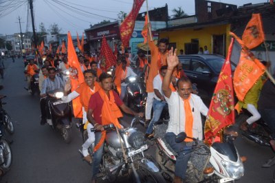 इधर, दमोह से भी शाम को एक वाहन रैली शोभायात्रा निकाली गई। नगर पालिका देव संकट मोचन हनुमान मंदिर से शुरू हुई और स्टेशन चौराहा, बस स्टैंड, कीर्ति स्तंभ, अंबेडकर चौराहा, घंटाघर, पलंदी चौराहा, ओवर ब्रिज, हटा नाका होते हुए लक्ष्मण कुटी धाम शाम करीब ७ बजे पहुंची। जहां सभी भक्तों ने हनुमान जी के दर्शन किए और आरती में शामिल हुए। वाहन रैली यात्रा के दौरान हनुमानजी और श्रीराम के जयकारों से पूरा नगर गुंजायमान हो गया। वाहनों पर बैठे युवा भगवा झंडा लिए हुए थे और जयकार लगा रहे थे।