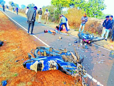 बटियागढ़. रजपुरा थाना क्षेत्र के नीमखेड़ा तिराहे के पास सोमवार शाम दो बाइको की आमने- सामने भिड़ंत हो गई। घटना में दो लोगो की मौत और दो लोग घायल हुए हैं। मृतकों में गोविंद 25 साल निवासी शेखपुरा और रूपसिंह पिता तिजई 23 निवासी कुम्हरबार थाना बटियागढ़ शामिल हैं। वहीं तुलसीराम निवासी और वीरू पिता नन्हें भाई 18 शेखपुरा गंभीर रूप से घायल हुए हैं। इधर, घटना की सूचना पर 108 और डायल 100 मौके पर पहुंची और मृतकों के शव की पंचनामा कार्रवाई के साथ घायलों को बटियागढ़ स्वास्थ्य केंद्र भेजा गया है। फिलहाल रजपुरा थाना पुलिस हादसे की जांच कर रही है।
