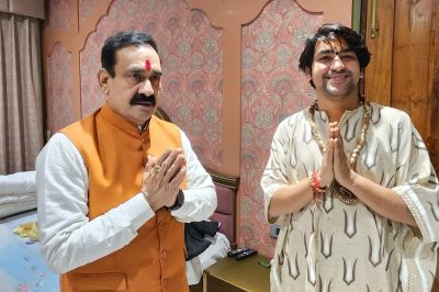 Pandit Dhirendra Shastri: बागेश्वर धाम के पीठाधीश्वर और प्रसिद्ध कथावाचक पंडित धीरेंद्र शास्त्री अचानक पूर्व गृहमंत्री नरोत्तम मिश्रा से मिलने उनके घर पहुंचे। जहां नरोत्तम मिश्रा ने उनका स्वागत शॉल और श्रीफल देकर किया। इसके साथ ही उनकी आरती उतारी और स्मृति चिन्ह रूप में तलवार भेंट की। दोनों के बीच बंद कमरे में लंबी बातचीत हुई।