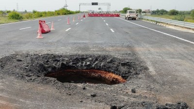 गनीमत यह रही कि इस दौरान कोई वाहन नहीं गुजर रहा था, जिससे बड़ा हादसा टल गया। गौरतलब है कि करीब एक लाख करोड़ रुपए की लागत से बनाए जा रहे इस एक्सप्रेस वे पर लगातार सड़क हादसे हो रहे हैं। अब तक करीब सवा सौ लोग जान गंवा चुके हैं। वहीं मानसून सीजन में जगह-जगह हुए गडढे भी सड़क निर्माण की पोल खोल रहे हैं।